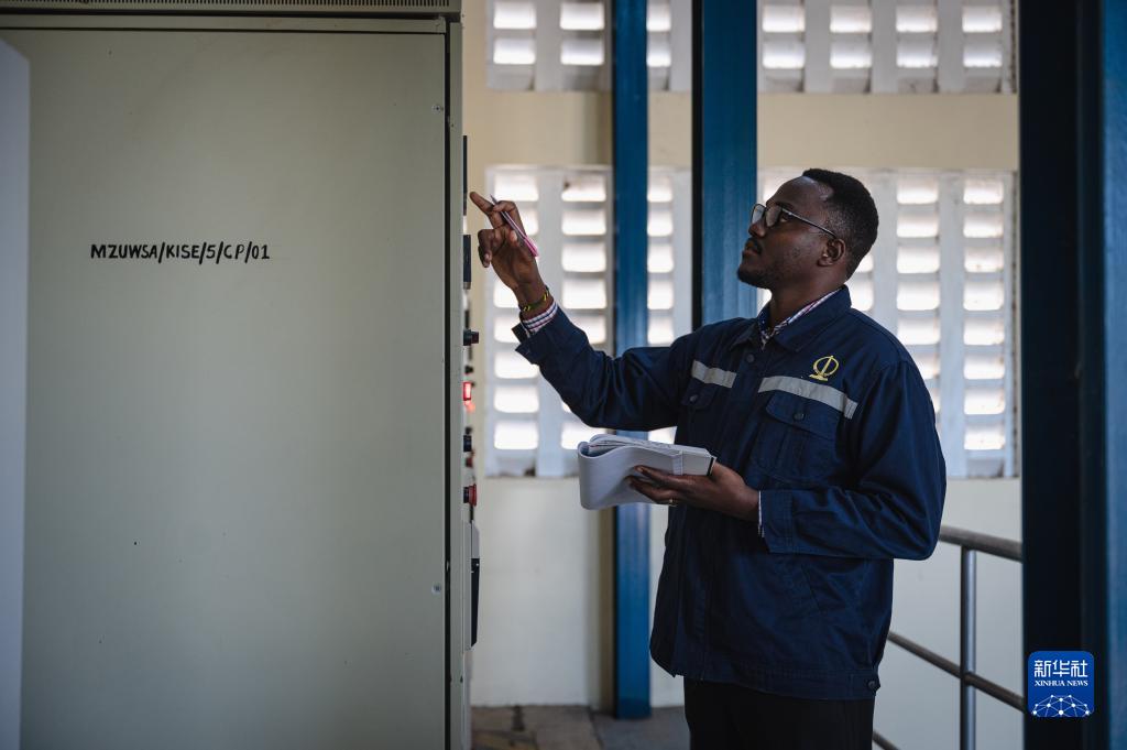 6月11日,在坦桑尼亞姆萬(wàn)扎省奇塞凱,凱爾文在供水項目增壓泵站內進(jìn)行電路檢測工作。