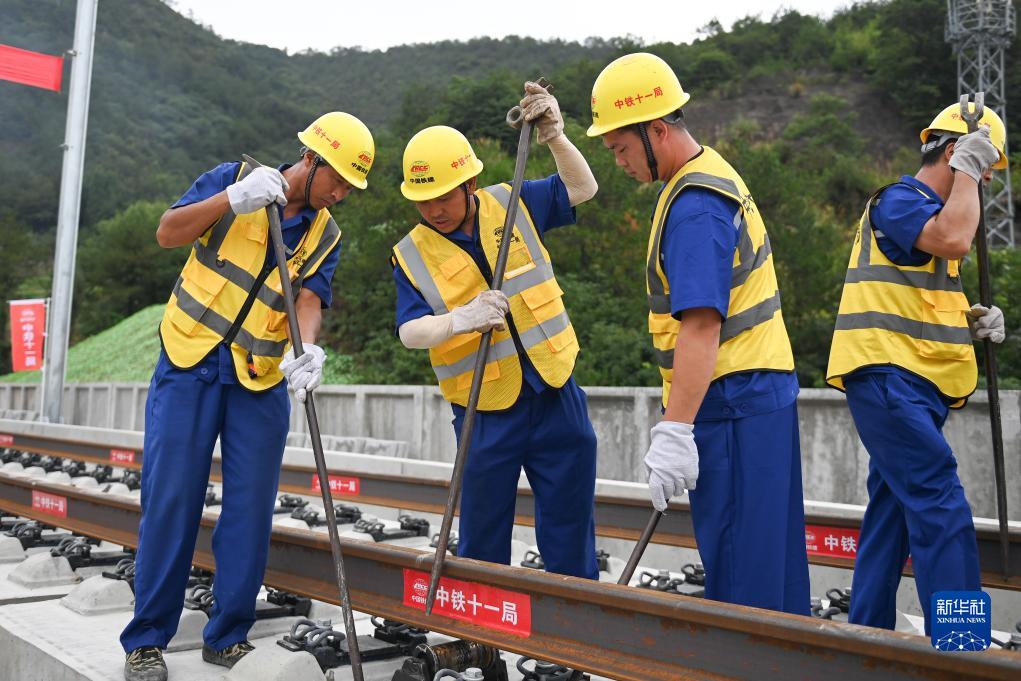 7月20日,中鐵十一局施工人員在杭溫鐵路上進(jìn)行鋪軌作業(yè)。