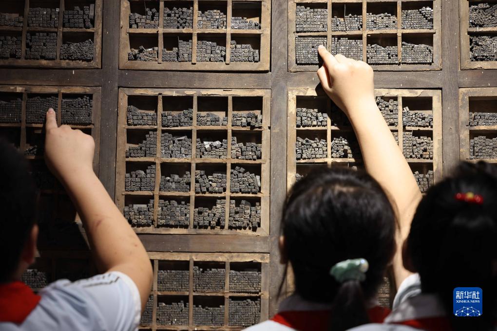 7月20日,在河北省滄州市吳橋縣河北線(xiàn)裝書(shū)博物館,吳橋縣新華小學(xué)學(xué)生學(xué)習了解鉛字印刷工藝。