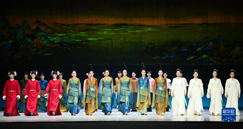 7月20日,中國東方演藝集團演員在烏魯木齊文化中心大劇院表演舞蹈詩(shī)劇《只此青綠》。