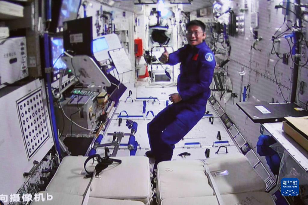 這是在北京航天飛行控制中心拍攝的神舟十六號航天員桂海潮為圓滿(mǎn)完成出艙任務(wù)的航天員景海鵬、朱楊柱點(diǎn)贊的畫(huà)面(7月20日攝)。