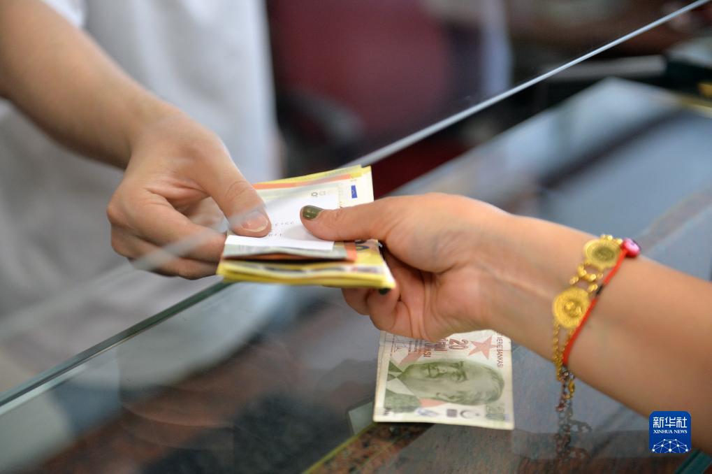 7月20日,一名顧客在土耳其安卡拉一個(gè)貨幣兌換點(diǎn)換錢(qián)。