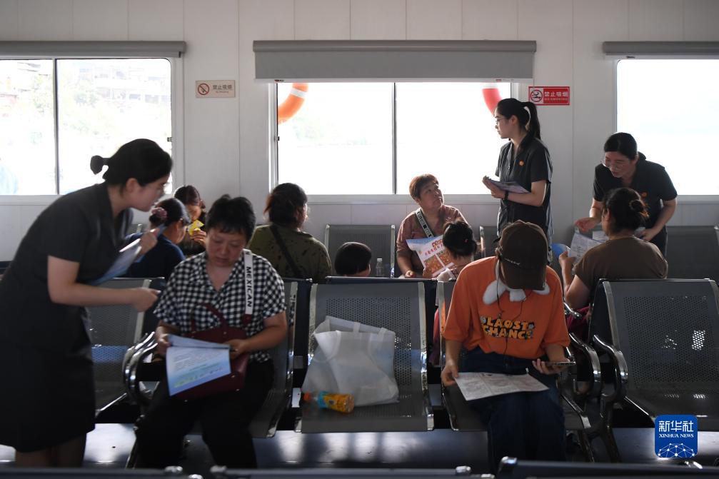 7月19日,安化縣人民法院干警(前左一、后右一、后右二)在柘溪客運碼頭進(jìn)行法制宣傳。
