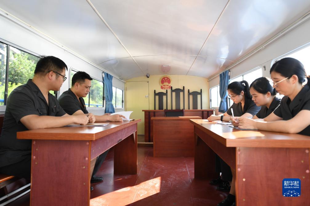 7月19日,安化縣人民法院干警在“水上法庭”討論案情。
