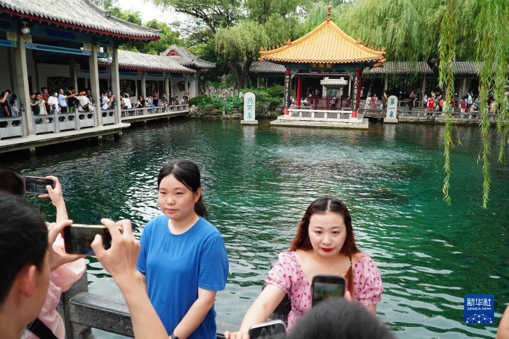 進(jìn)入夏季以來(lái),位于山東省濟南市的趵突泉吸引了大量暑期旅游的游客前來(lái)觀(guān)賞。
