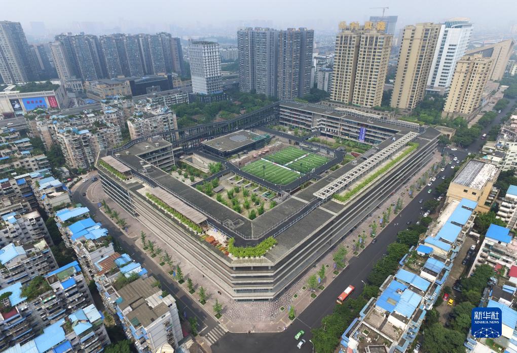 這是成都西村大院樓頂跑道及足球場(chǎng)(2016年5月28日攝,無(wú)人機照片)。