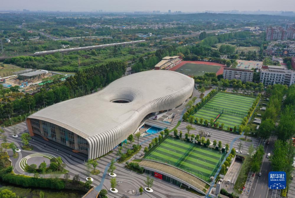 這是成都市新都區的香城體育中心(4月17日攝,無(wú)人機照片),這里將成為成都大運會(huì )水球項目的比賽場(chǎng)地。