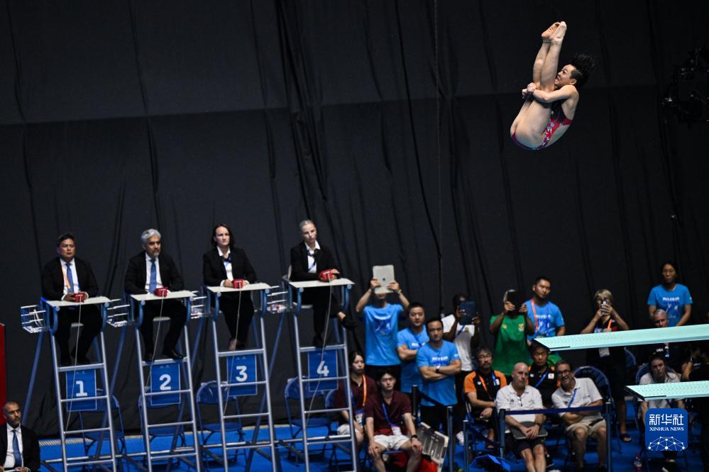 當日,在日本福岡舉行的2023年世界游泳錦標賽跳水女子單人三米板決賽中,中國選手陳藝文、昌雅妮分別以359.50分和341.50分的成績(jì)包攬冠亞軍。