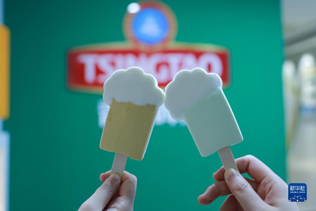 7月21日在山東省青島市李滄區第二啤酒廠(chǎng)純生之旅博物館拍攝的啤酒造型文創(chuàng )雪糕。