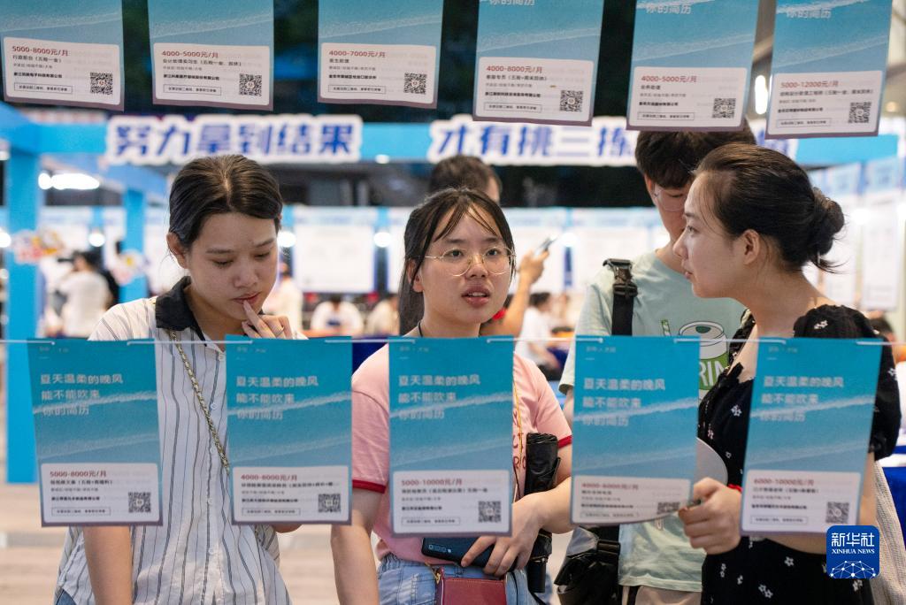 當日,浙江省金華市舉辦“人才夜市”高校畢業(yè)生專(zhuān)場(chǎng),多家生物醫藥、機械制造、新能源企業(yè)為求職者提供工作崗位,吸引了許多高校畢業(yè)生前往咨詢(xún)應聘。
