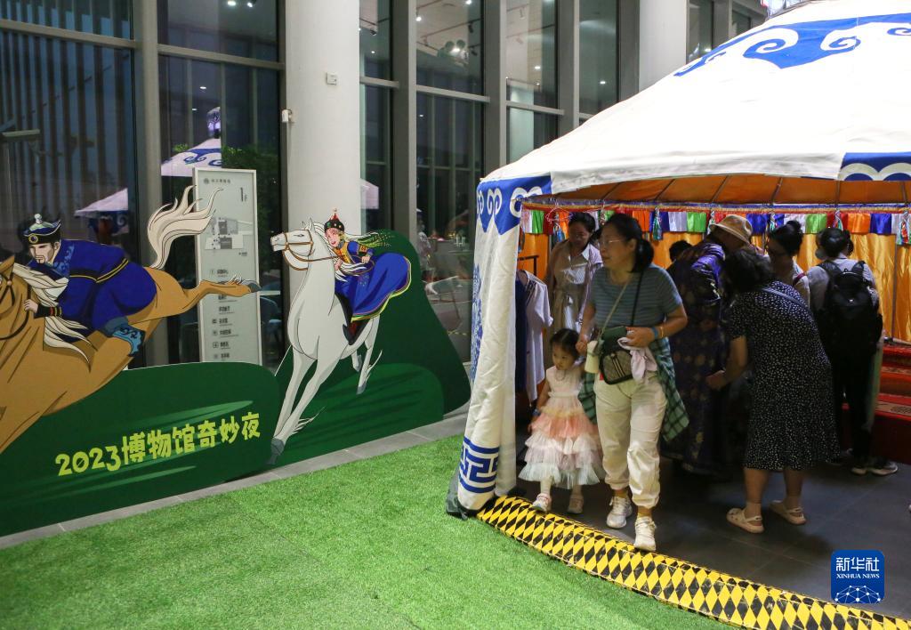 當日,為配合“漠北鋒鳴——鄂爾多斯青銅器文物精品展”,助力城市夜經(jīng)濟發(fā)展,上海市閔行區博物館開(kāi)展夜間“那達慕”大會(huì )。參觀(guān)者可以體驗射箭、拔河,品嘗特色美食,充分感受民俗風(fēng)情的魅力。
