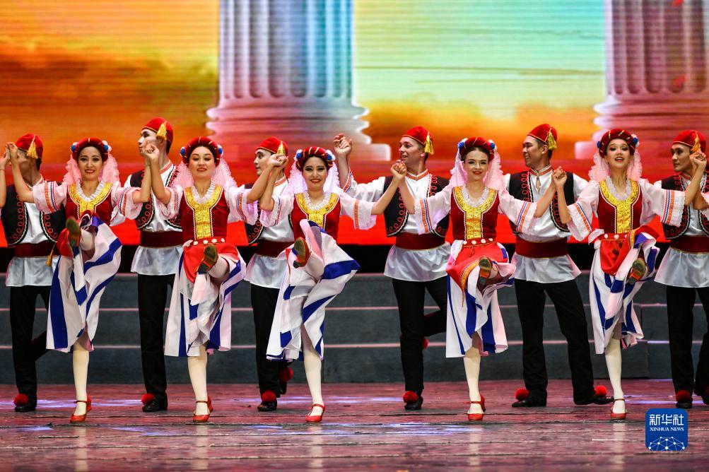 7月21日,哈薩克斯坦薩爾塔納國家舞蹈團的演員在演出。