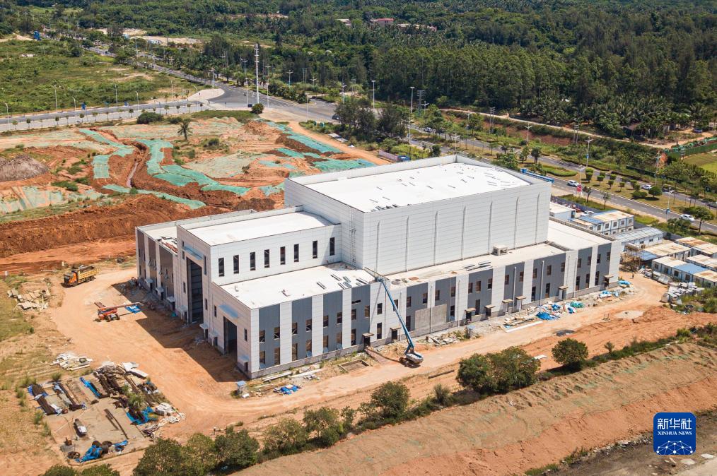 這是在海南文昌國際航天城拍攝的建設中的衛星總裝測試廠(chǎng)房項目(無(wú)人機照片,7月15日攝)。