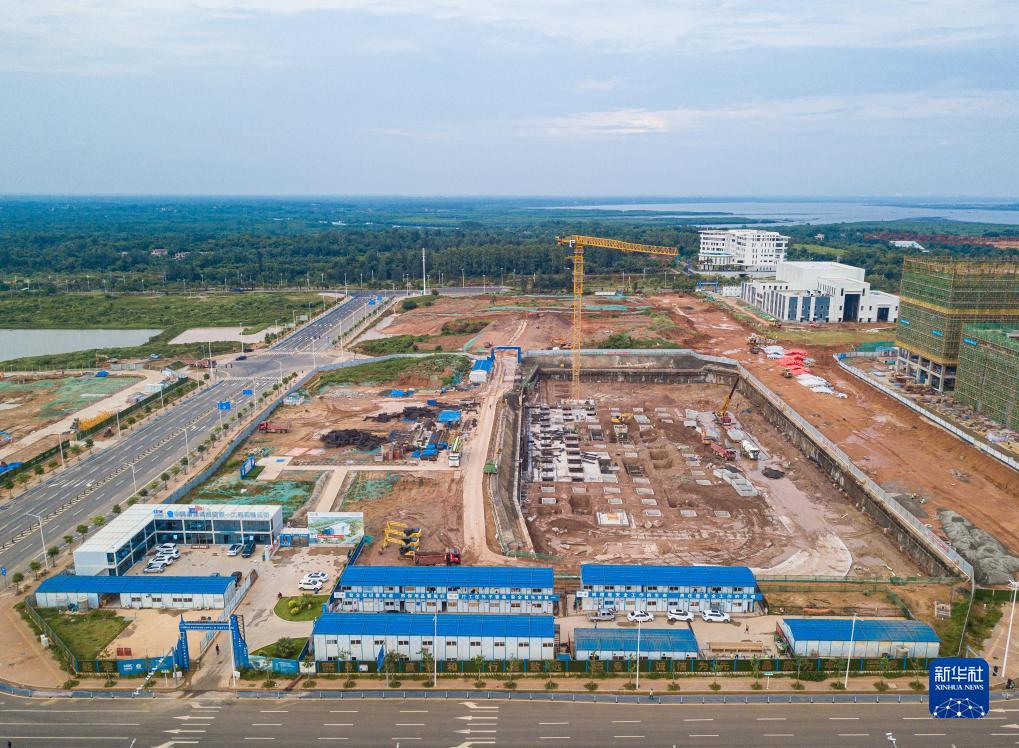 這是在海南文昌國際航天城拍攝的建設中的衛星研發(fā)中心項目(無(wú)人機照片,7月16日攝)。
