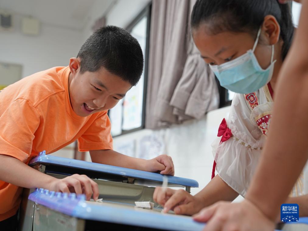 今年暑假,上海市普陀區小學(xué)生愛(ài)心暑托班首次設立“新業(yè)態(tài)新就業(yè)群體子女專(zhuān)班”,招收外賣(mài)騎手、快遞員等新就業(yè)群體的子女,且不限上海學(xué)籍并減免一半費用,以緩解這些家庭的暑期“看護難”的問(wèn)題。孩子們在愛(ài)心暑托班里,參加了豐富有趣的課程和活動(dòng),還交到了新朋友。