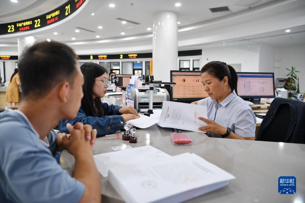 7月22日,河北省灤州市政務(wù)服務(wù)中心工作人員在為市民辦理業(yè)務(wù)。
