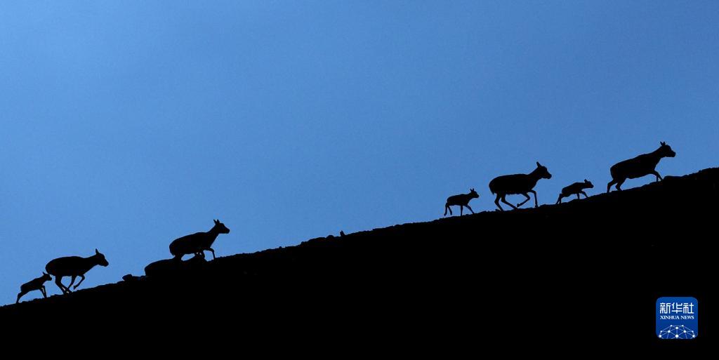 7月8日,在新疆阿爾金山國家級自然保護區兔子湖地區,藏羚羊媽媽帶著(zhù)幼崽遷徙。