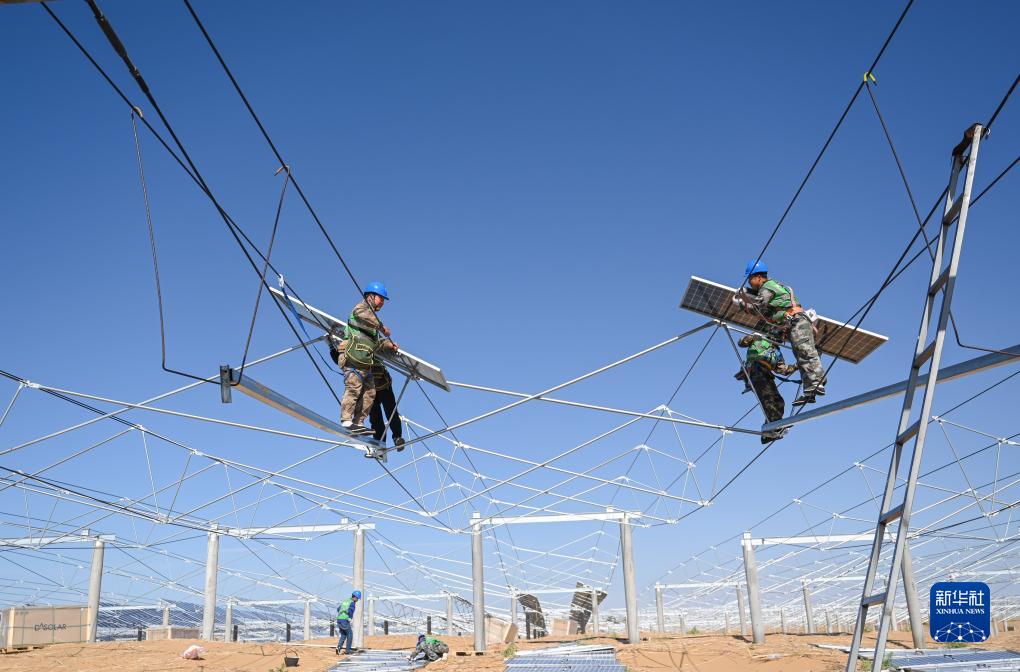 近日,位于內蒙古杭錦旗庫布其沙漠億利生態(tài)示范區的蒙西基地庫布其200萬(wàn)千瓦光伏治沙項目進(jìn)入光伏板安裝環(huán)節。據了解,該項目總投資111.5億元,包括200萬(wàn)千瓦光伏場(chǎng)區、10萬(wàn)畝沙漠治理生態(tài)建設工程等。項目預計2024年底前實(shí)現全容量并網(wǎng)發(fā)電,建成后年平均可供應綠色電力約40億千瓦時(shí)。
