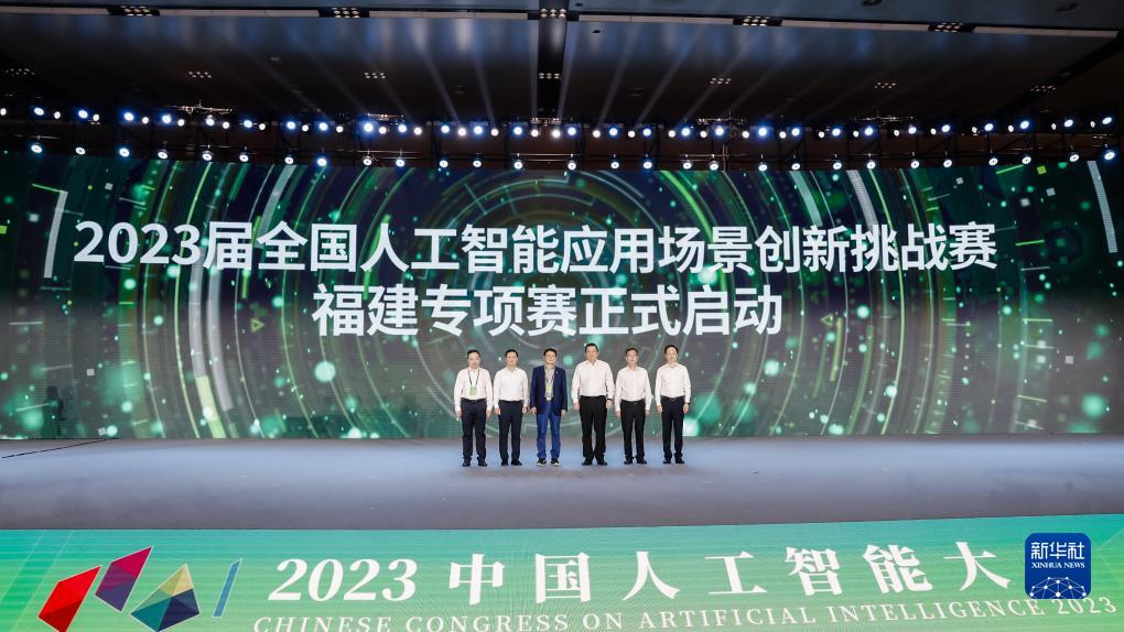 這是7月22日拍攝的2023屆全國人工智能應用場(chǎng)景創(chuàng )新挑戰賽福建專(zhuān)項賽正式啟動(dòng)儀式。