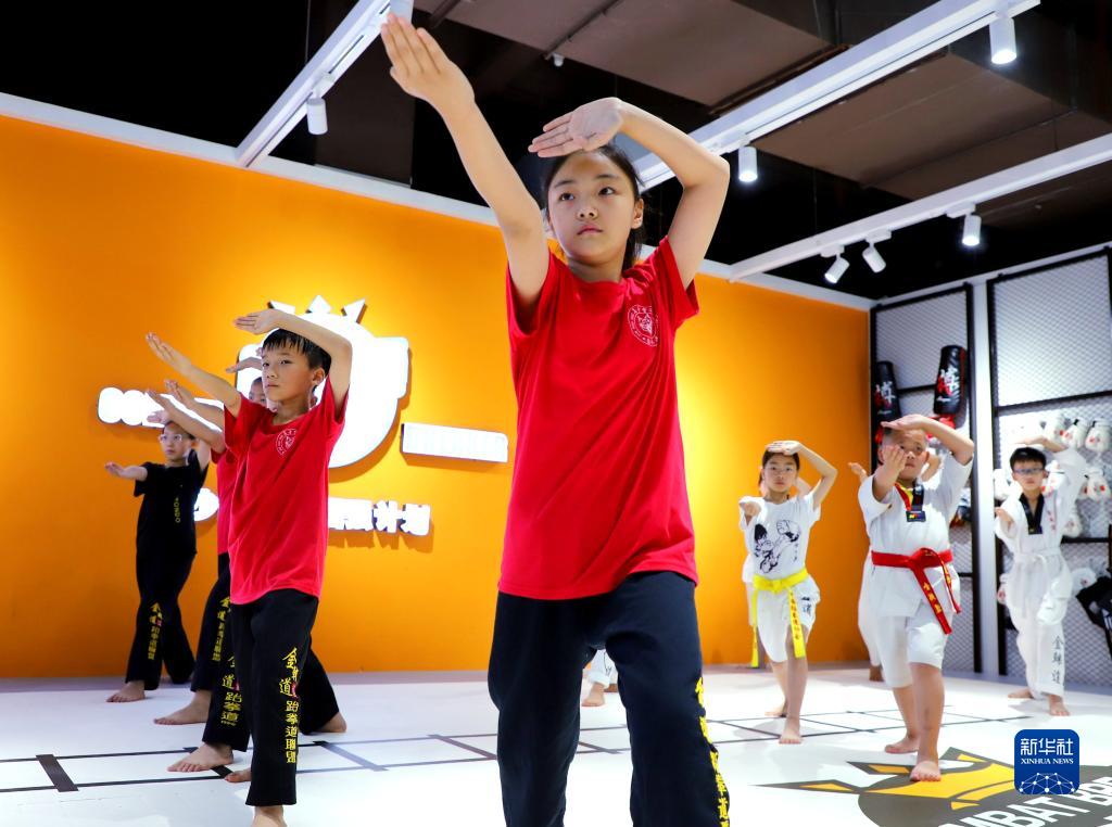 7月22日,在河南省南陽(yáng)市區一家跆拳道館內,學(xué)生練習跆拳道。