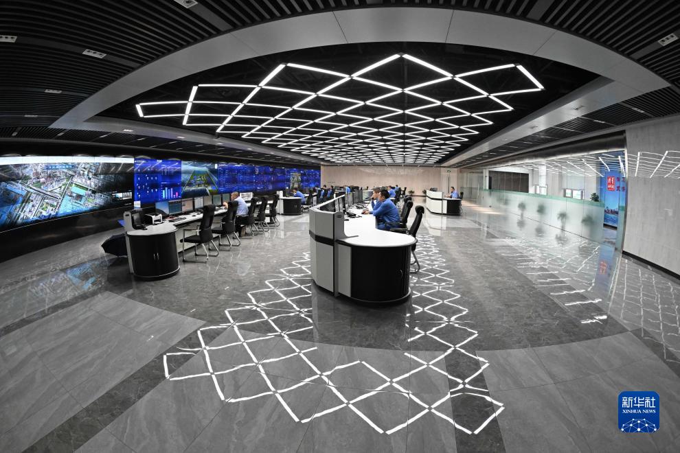 首鋼京唐鋼鐵聯(lián)合有限責任公司工作人員在生產(chǎn)管控中心工作(7月22日攝)。