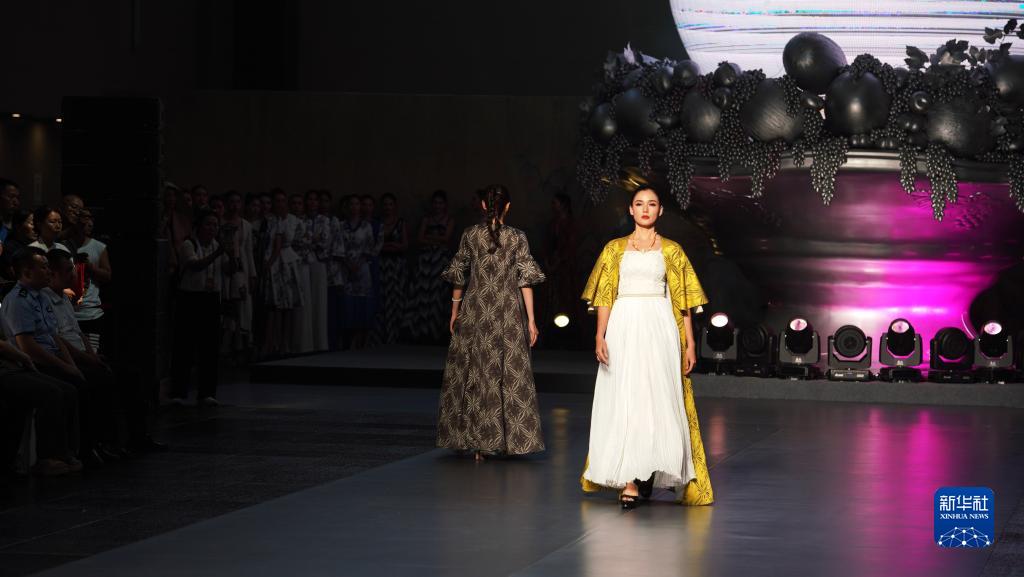 在時(shí)尚秀現場(chǎng),模特展示服飾作品(7月22日攝)。