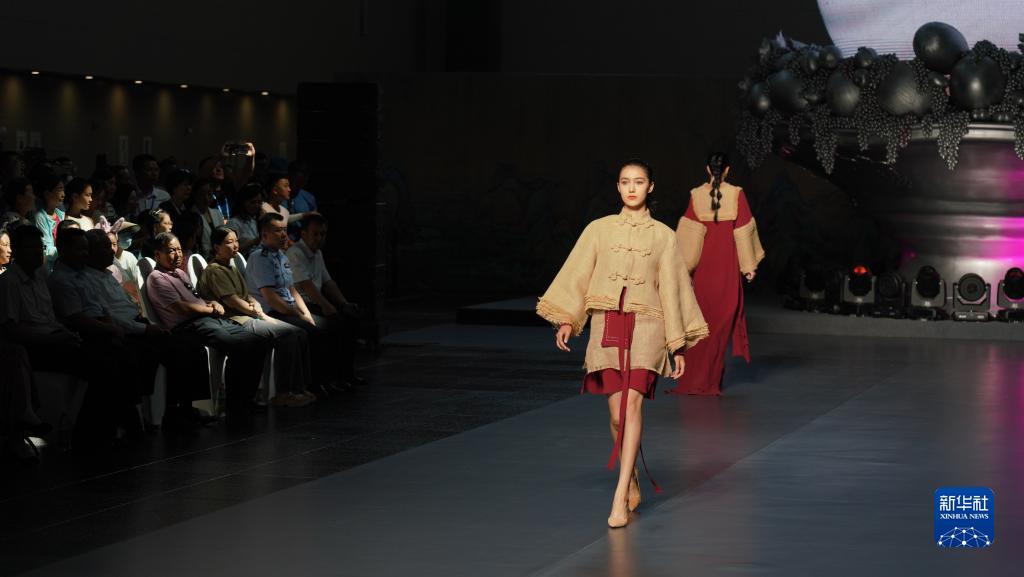 在時(shí)尚秀現場(chǎng),模特展示服飾作品(7月22日攝)。