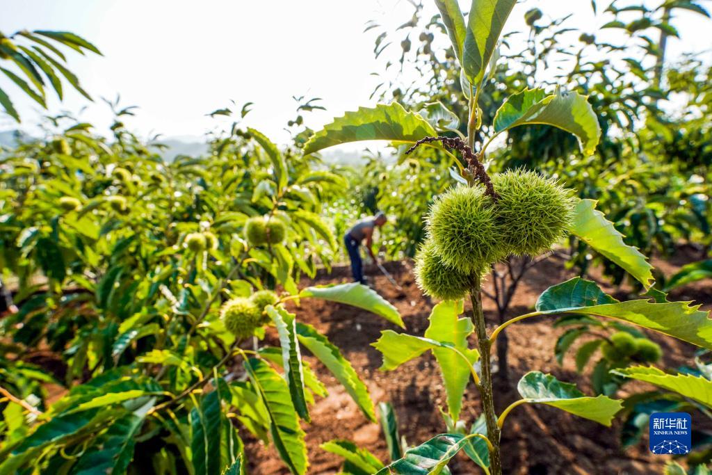 7月23日,河北省遵化市侯家寨鎮農民在栗樹(shù)果園整理樹(shù)下土地。