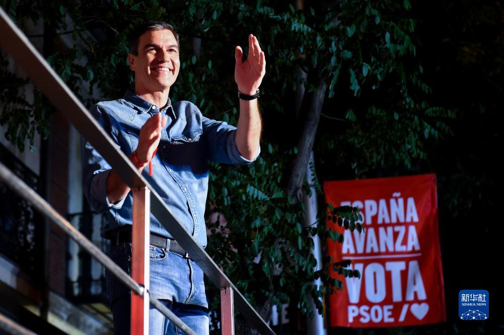 7月23日,在西班牙馬德里,西班牙首相、工人社會(huì )黨總書(shū)記桑切斯與支持者互動(dòng)。