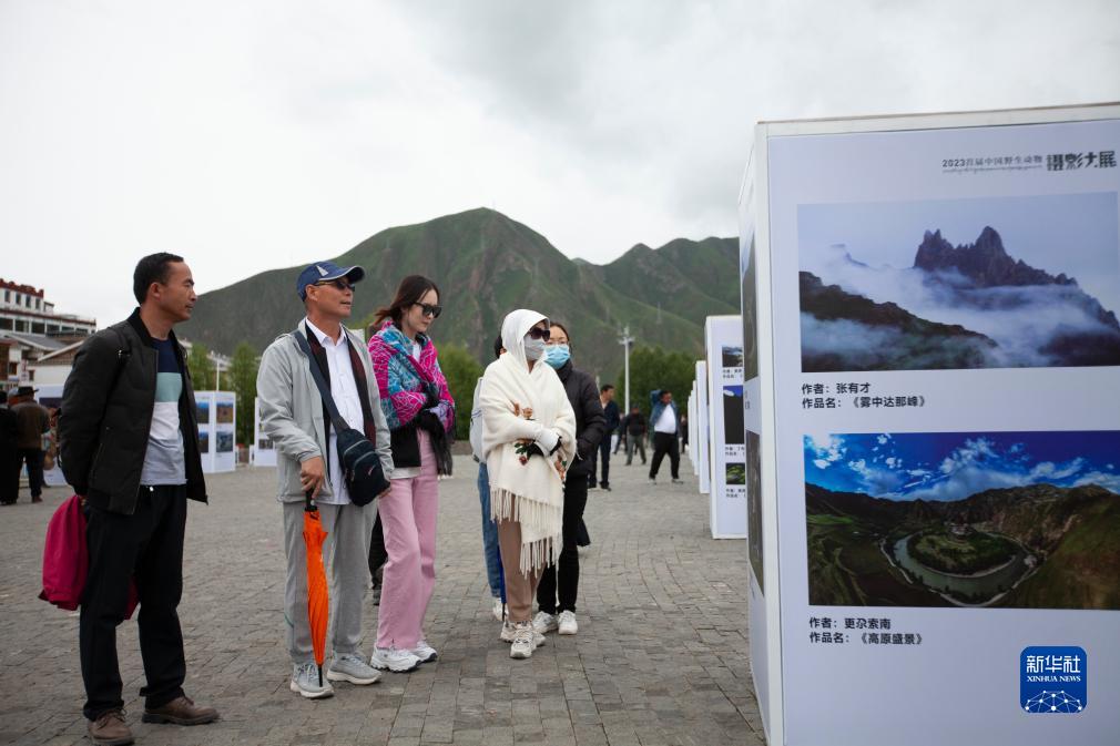 7月24日,人們在青海玉樹(shù)格薩爾廣場(chǎng)參觀(guān)2023首屆中國野生動(dòng)物攝影大展。