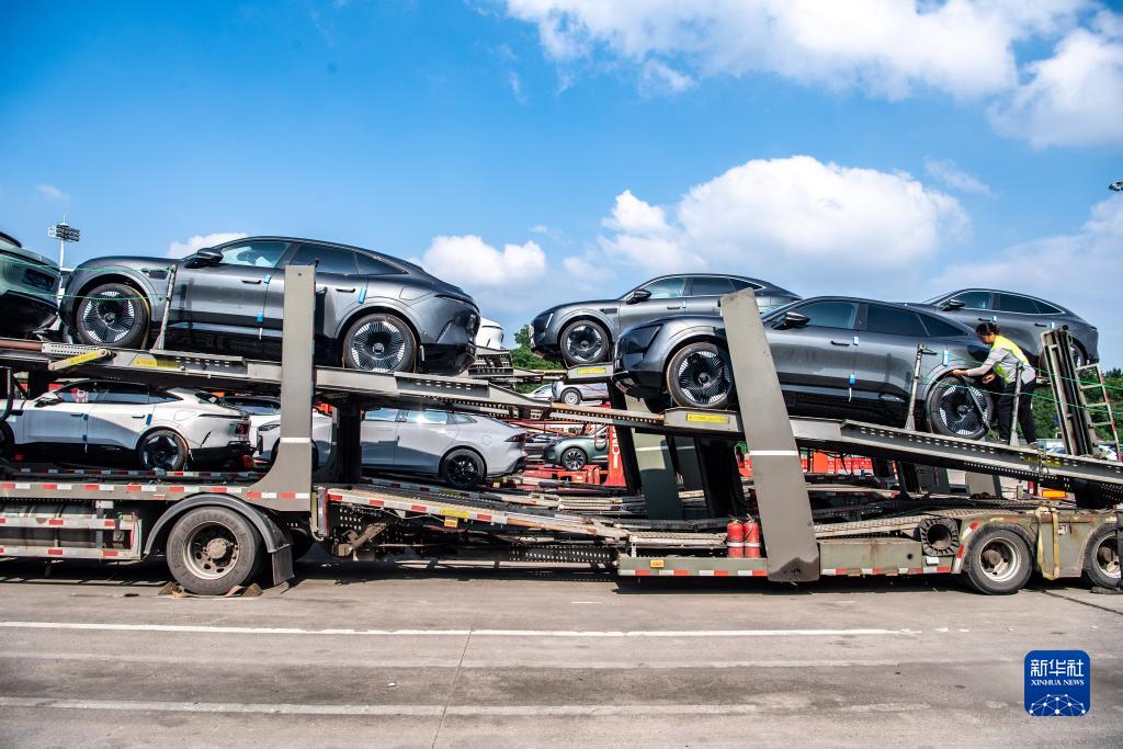 7月20日,在位于重慶市江北區的長(cháng)安汽車(chē)整車(chē)分撥中心,新能源汽車(chē)阿維塔裝車(chē)發(fā)運。