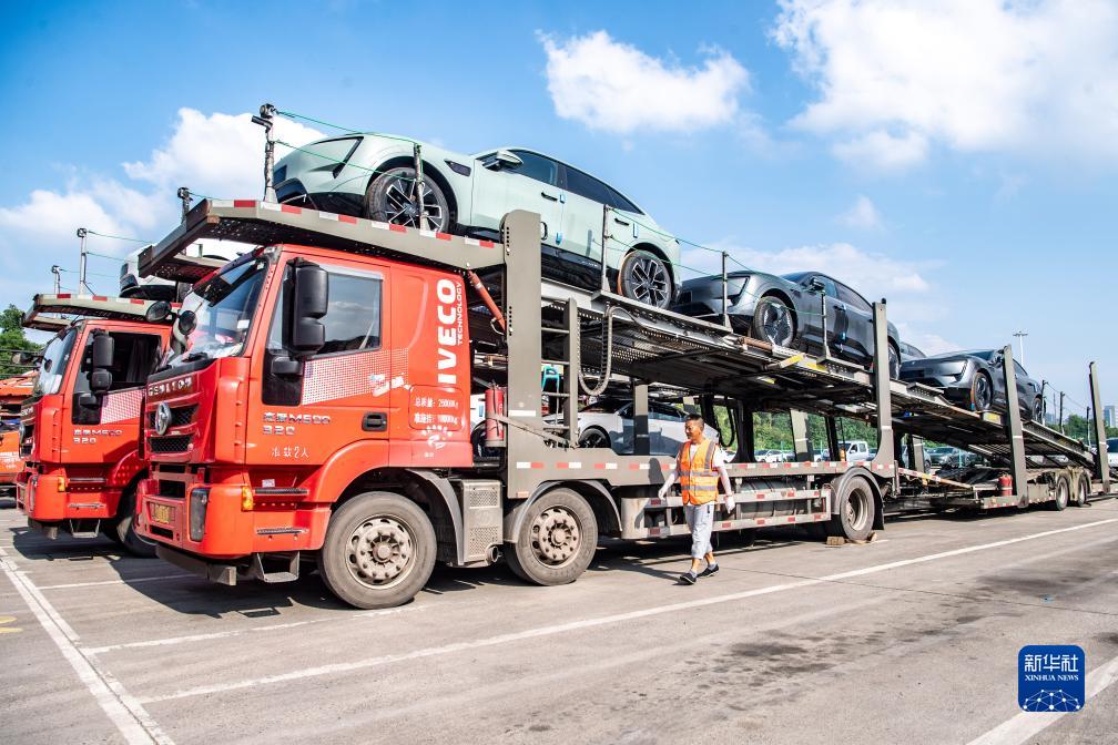 7月20日,在位于重慶市江北區的長(cháng)安汽車(chē)整車(chē)分撥中心,新能源汽車(chē)阿維塔裝車(chē)發(fā)運。