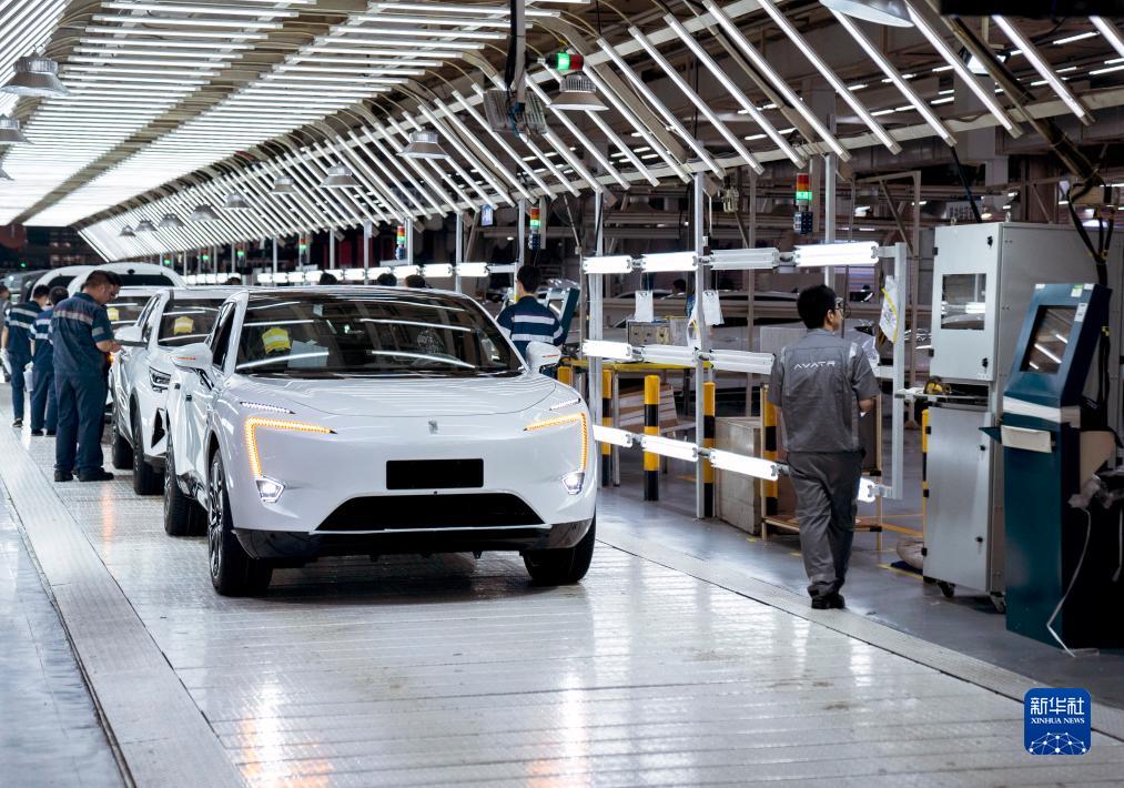 7月20日,在位于重慶市江北區的長(cháng)安汽車(chē)生產(chǎn)基地車(chē)間內,工作人員在新能源汽車(chē)阿維塔生產(chǎn)線(xiàn)上作業(yè)。