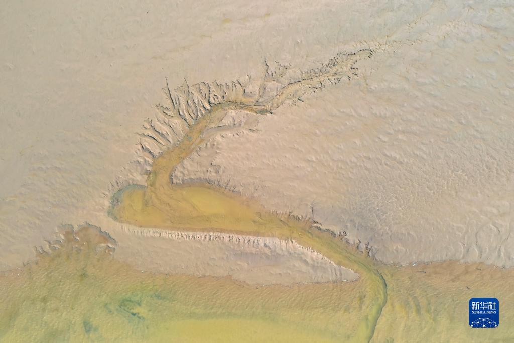 近日,隨著(zhù)黃河調水調沙結束,黃河河南省開(kāi)封市黑崗口險工段水位下降。河床被水流沖刷過(guò)后呈現出縱橫交錯的“脈絡(luò )”。