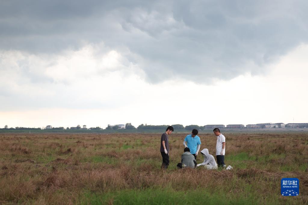 7月9日,中國科學(xué)院洞庭湖濕地生態(tài)系統觀(guān)測研究站科研人員鄒業(yè)愛(ài)博士(右一)和學(xué)生在湖南東洞庭湖國家級自然保護區采樣。