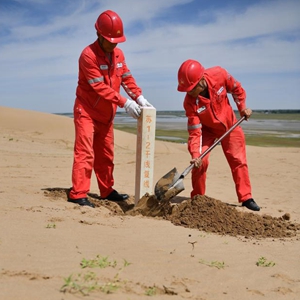 在內蒙古自治區鄂爾多斯市烏審旗毛烏素沙地深處,一群身著(zhù)紅色工服的天然氣管線(xiàn)巡線(xiàn)員,每日徒步穿行在沙漠、戈壁、草原間。