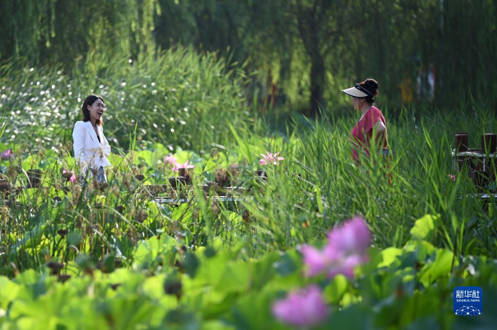 7月25日,市民在白溝新城一處“口袋公園”游玩。