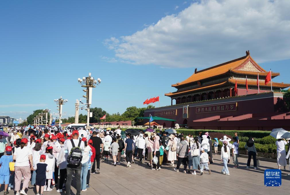 人們在天安門(mén)城樓前參觀(guān)游覽(7月9日攝)。