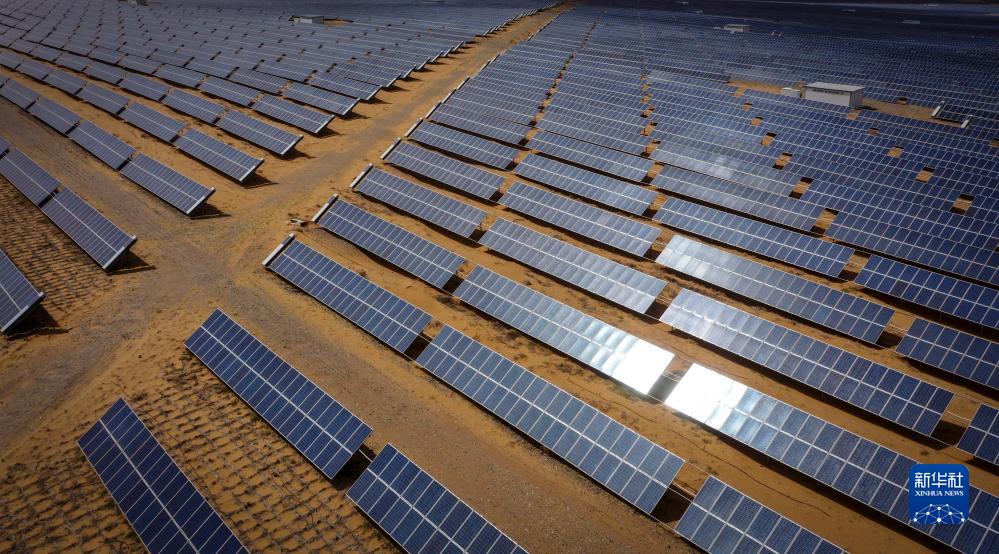 7月20日拍攝的寧夏中衛市沙漠光伏產(chǎn)業(yè)園光伏電站(無(wú)人機照片)。