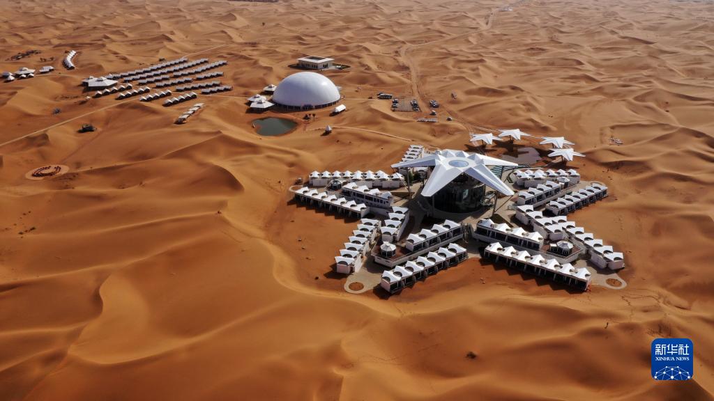 7月20日在中衛市沙坡頭景區騰格里沙漠拍攝的星星酒店(無(wú)人機照片)。