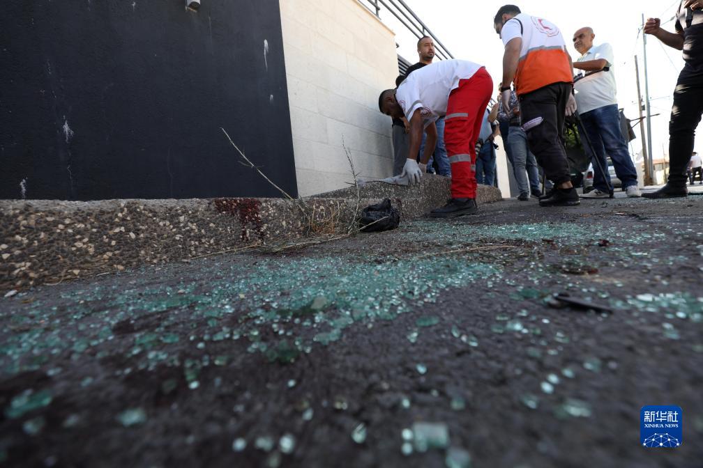 7月25日,巴勒斯坦醫護人員在約旦河西岸城市納布盧斯事發(fā)現場(chǎng)工作。