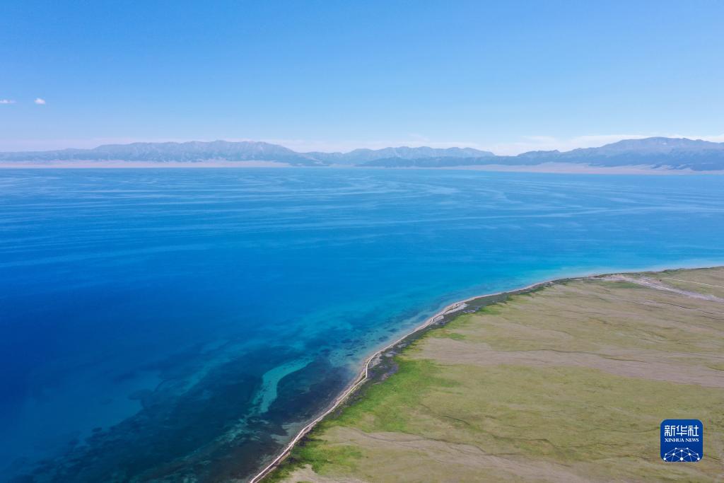 這是7月25日拍攝的新疆賽里木湖(無(wú)人機照片)。