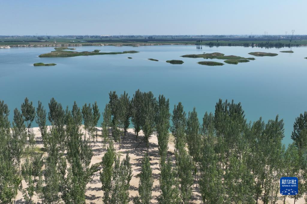7月25日拍攝的河北省新樂(lè )市境內的大沙河景色(無(wú)人機照片)。
