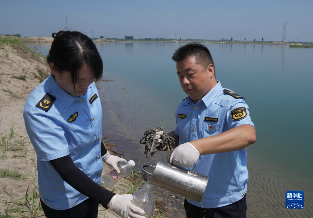 7月25日,河北省新樂(lè )市環(huán)保局工作人員在大沙河提取水樣,準備進(jìn)行檢測。