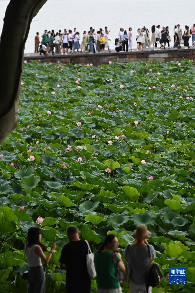 時(shí)值盛夏,杭州西湖景區荷花競相綻放,呈現出“接天蓮葉無(wú)窮碧,映日荷花別樣紅”的美麗景象。
