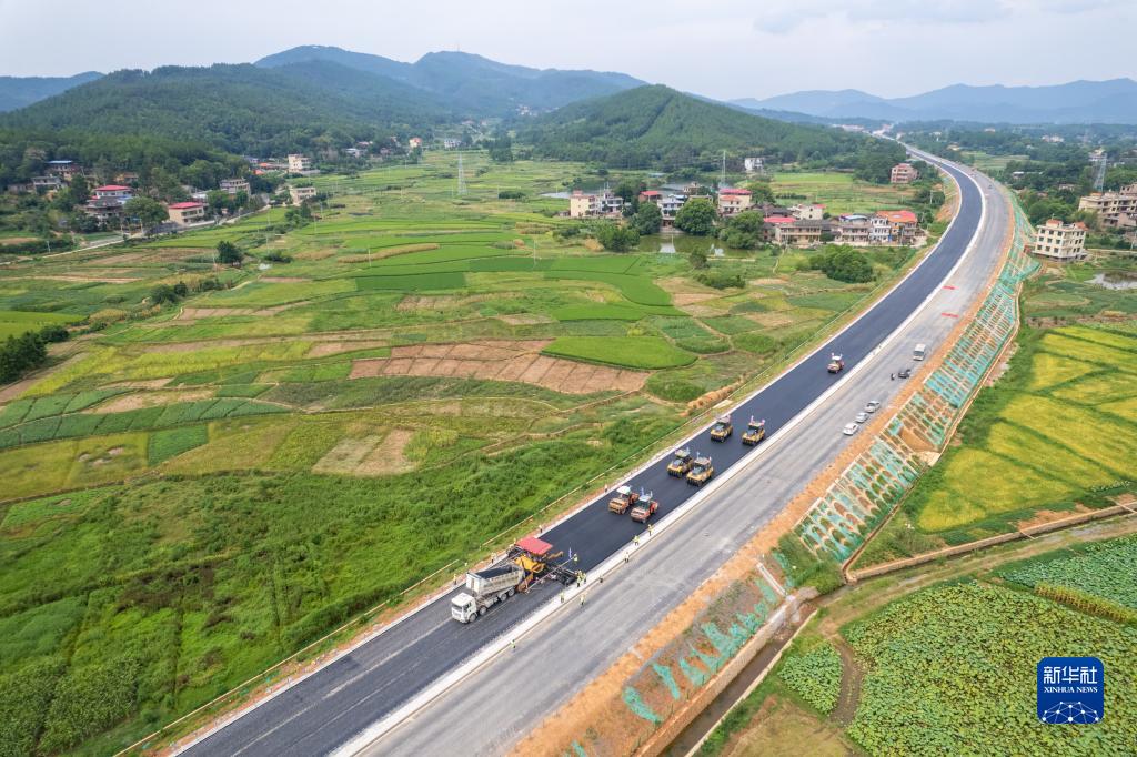 這是7月25日拍攝的衡永高速路面工程施工現場(chǎng)(無(wú)人機照片)。