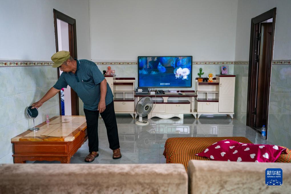 張普忠收拾客廳準備出門(mén)(7月23日攝)。新華社記者 陳欣波 攝