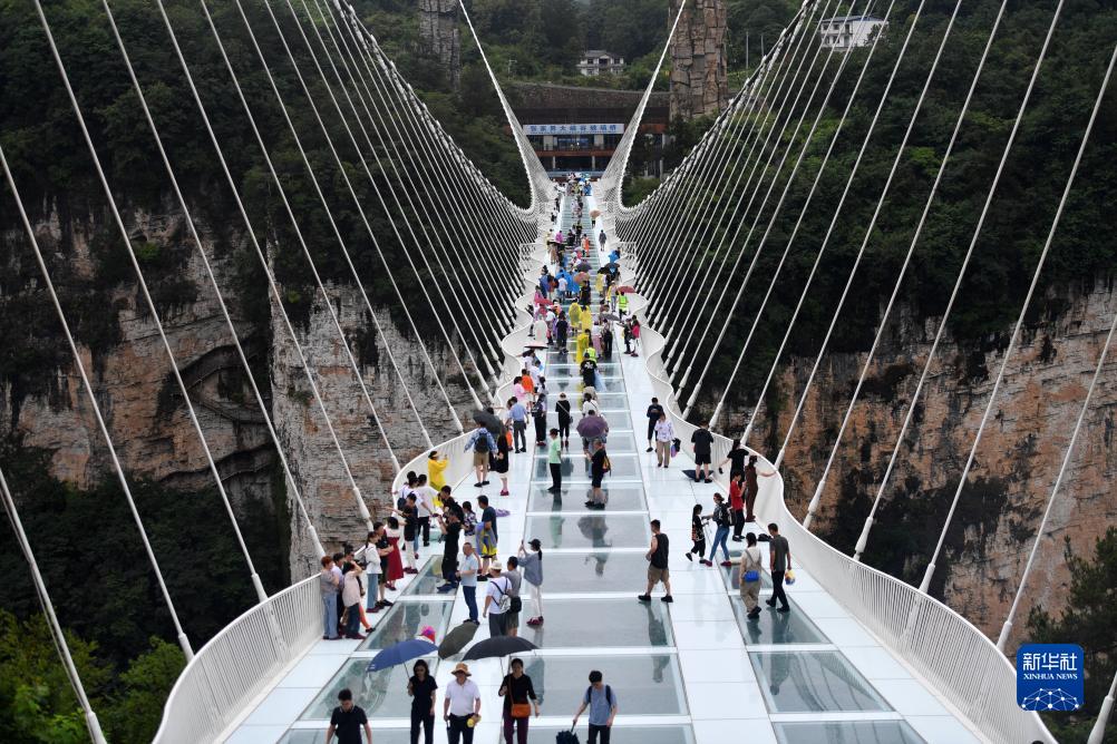 7月25日,游客在張家界大峽谷景區玻璃橋游覽。
