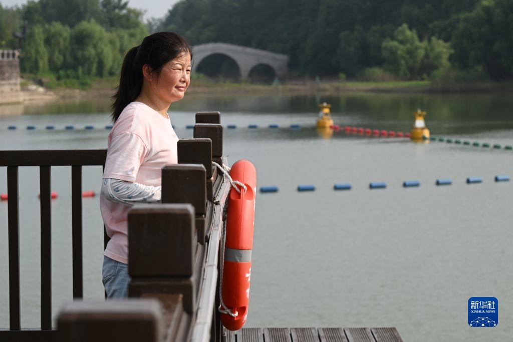 7月24日,陳蘭香在馬鞍山薛家洼長(cháng)江邊眺望,不遠處是她當漁民時(shí)曾經(jīng)停泊漁船的地方。新華社記者 周牧 攝