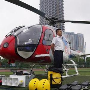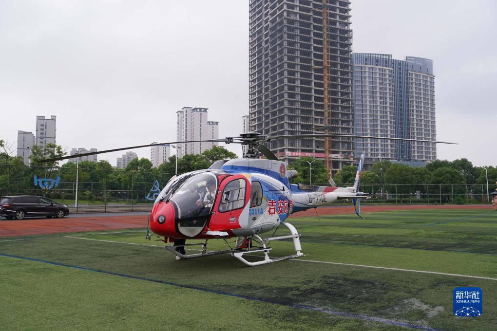 7月26日,直升機從位于吉安市白鷺洲中學(xué)的起降點(diǎn)起飛。